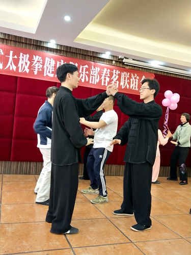 乔氏太极拳的弟子和学员们还演练了磨劲、抓把、缠把和打手的练功方法,使联谊活动达到了高潮。